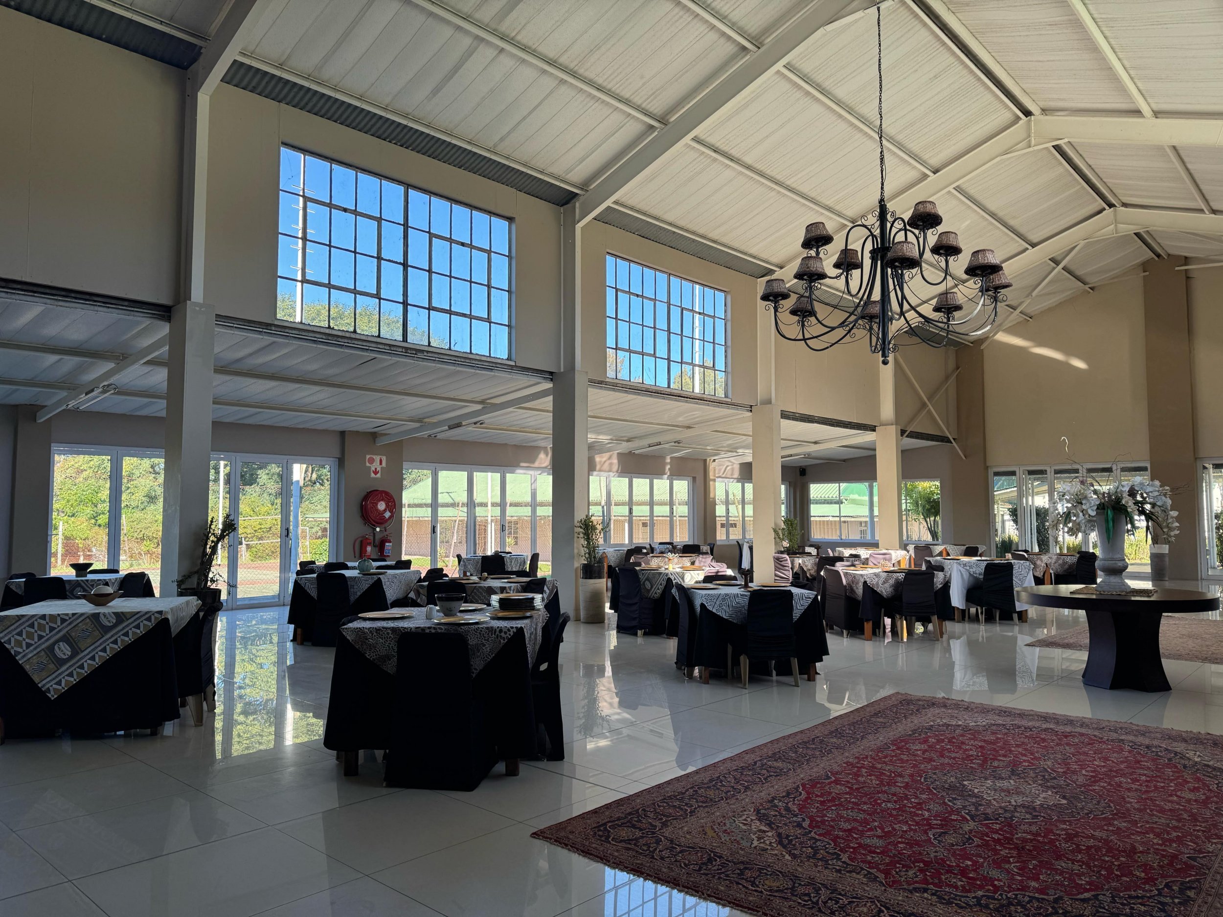 Meals are served in the central dining area. Breakfast is served from 9.30 – 10am, lunch is from 1 – 2pm and dinner is from 6 – 7pm.